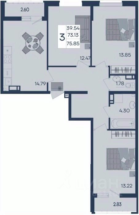 3 комнатная квартира с ремонтом 75.85 м², на 4 этаже в жилом комплексе ''Дом 101''.