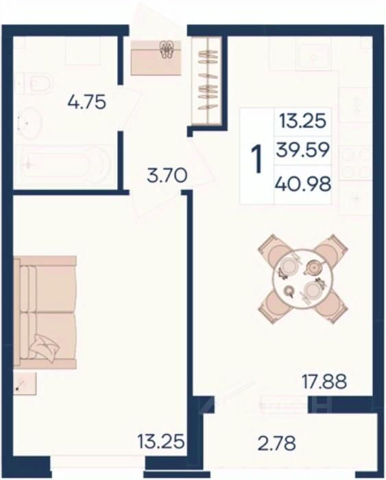 1 комнатная квартира с ремонтом 40.98 м², на 2 этаже в жилом комплексе ''Дом 101''.