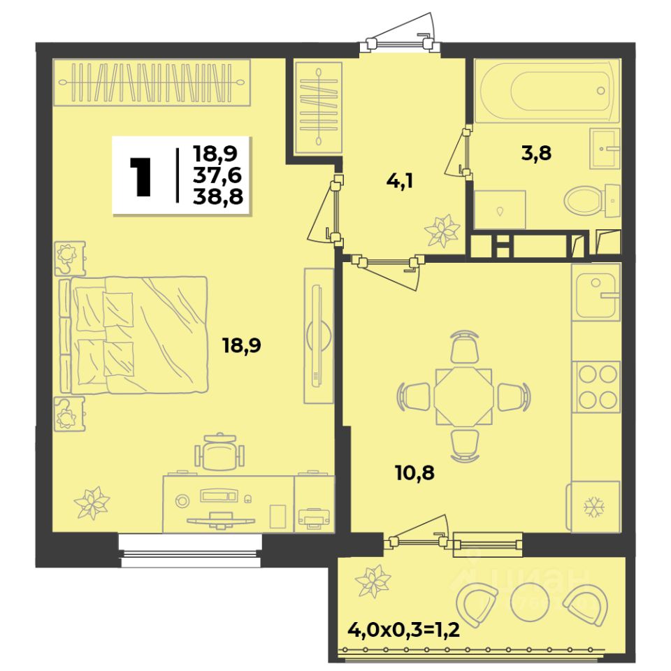 Общая площадь38,8 м2