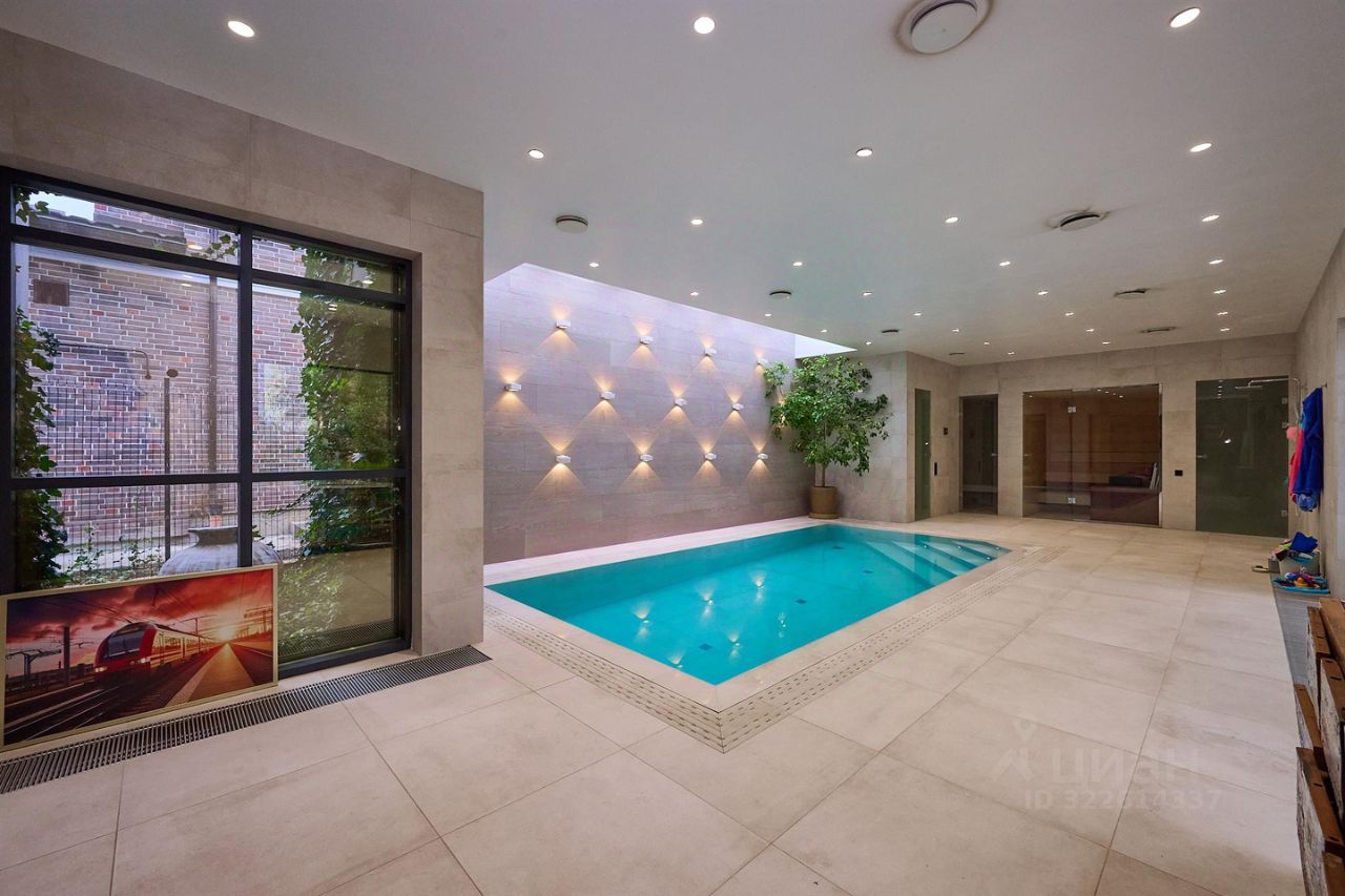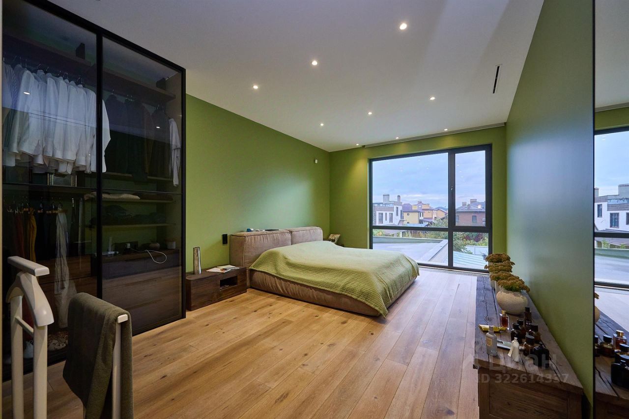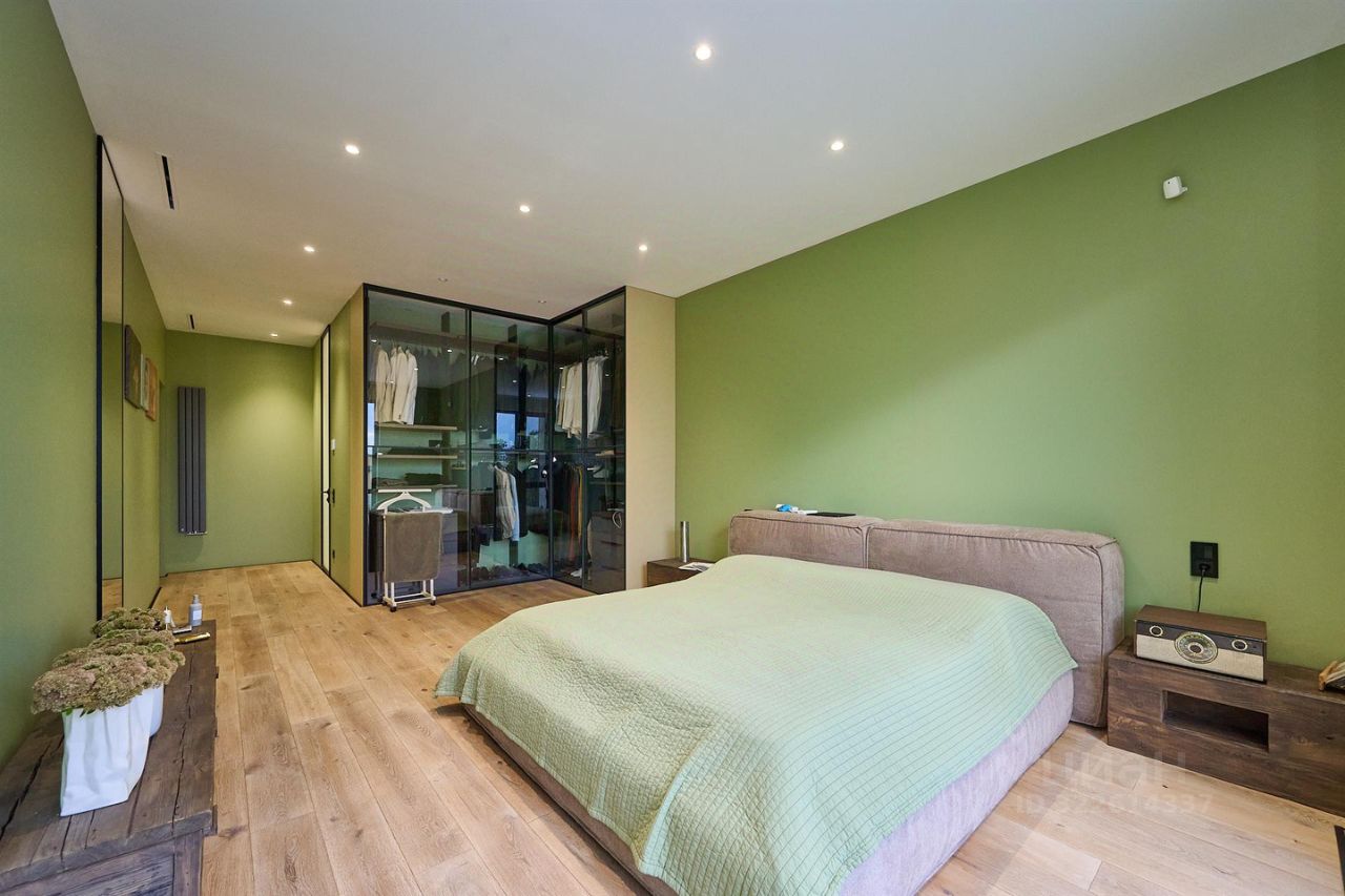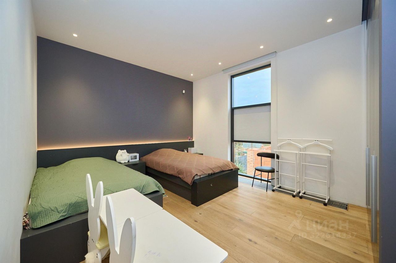 В доме на трех уровнях расположены хозяйская мастер-спальня, детские комнаты, гостевая мастер-комната и комната для персонала, огромная гостиная 75 кв метров с зоной кухни на первом уровне с высокими потолками, прачечная, помещение для элементов управления системами отопления и вентиляции. Из гостиной есть выход в крытую зону отдыха площадью 85 кв метров, где расположен бассейн с системой подогрева и рециркуляции, зона SPA с турецким хаммом и сауной. В каждой комнате, в каждом помещении выполнен дизайнерский ремонт с использованием дорогих импортных материалов, шкафы и гардеробные заложены в проекте дома и сделаны на этапе строительства и отделки. Лестница на второй и третий уровень сделана по технологии парящие ступеньки, перила прозрачные, стеклянные.
