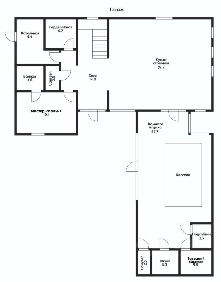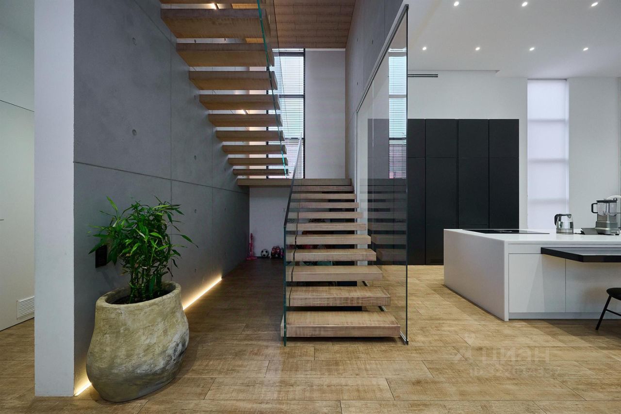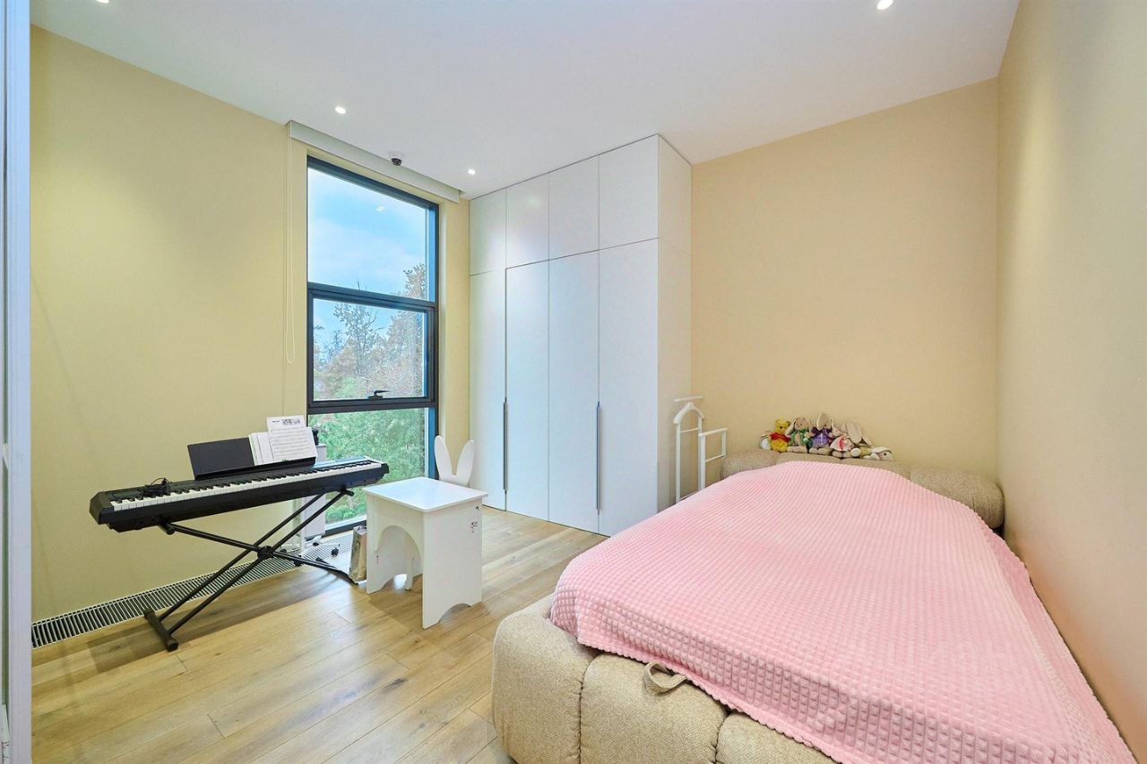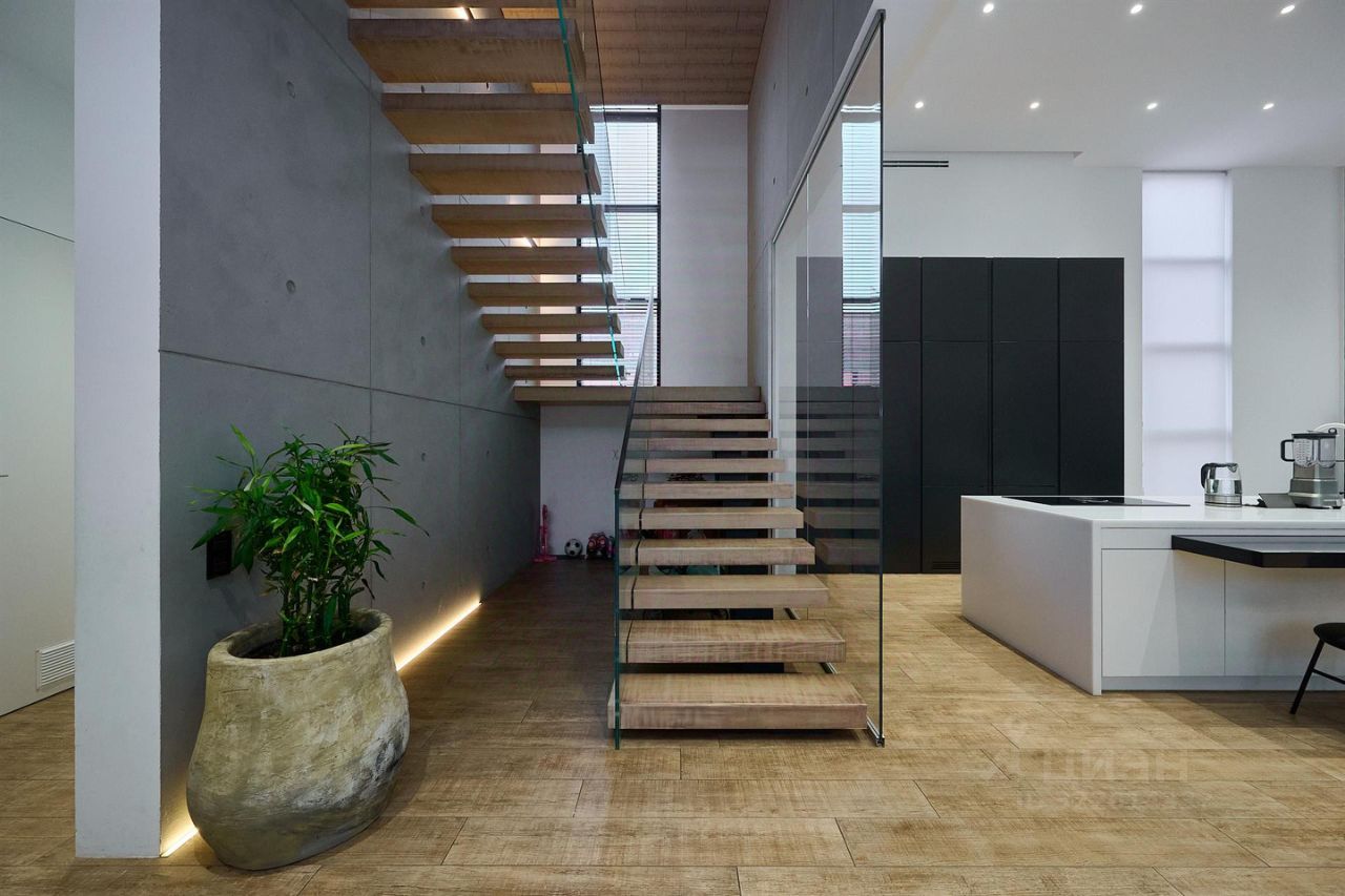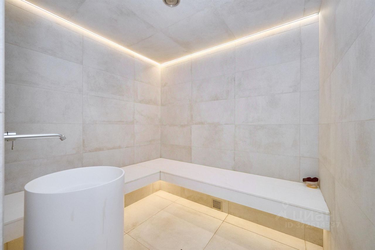 В доме на трех уровнях расположены хозяйская мастер-спальня, детские комнаты, гостевая мастер-комната и комната для персонала, огромная гостиная 75 кв метров с зоной кухни на первом уровне с высокими потолками, прачечная, помещение для элементов управления системами отопления и вентиляции. Из гостиной есть выход в крытую зону отдыха площадью 85 кв метров, где расположен бассейн с системой подогрева и рециркуляции, зона SPA с турецким хаммом и сауной. В каждой комнате, в каждом помещении выполнен дизайнерский ремонт с использованием дорогих импортных материалов, шкафы и гардеробные заложены в проекте дома и сделаны на этапе строительства и отделки. Лестница на второй и третий уровень сделана по технологии парящие ступеньки, перила прозрачные, стеклянные.