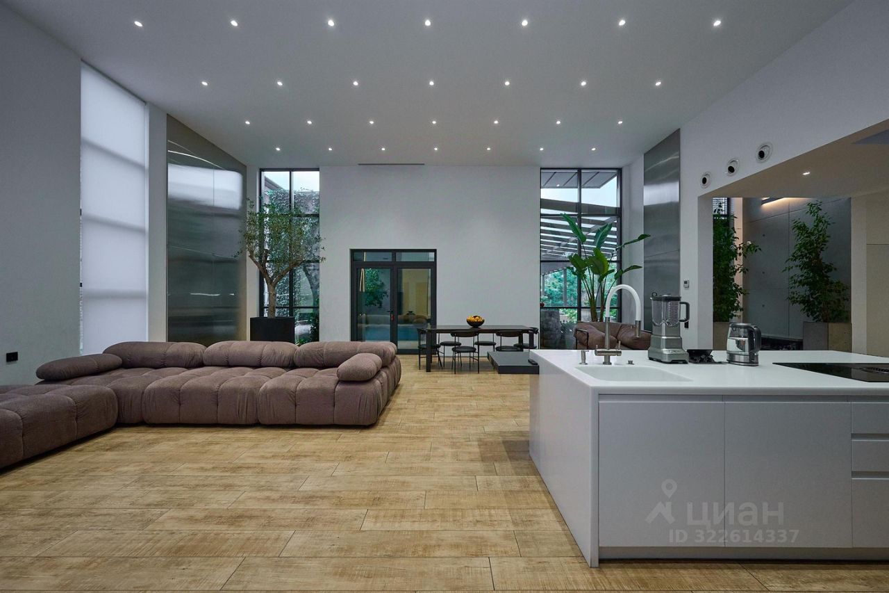 Дом построен в стиле High-tech 6 лет назад с применением самых передовых материалов и технологий. Наружные стены выполнены из железобетона и кирпича и утеплены с соблюдением всех требований и нормативов, что делает его энергоэффективным - зимой в доме сохраняется тепло, а летом прохлада. Применена система приточно-вытяжной вентиляции от ведущего производителя - компании MDV, все блоки систем вентиляции, кроме компактных пультов управления выведены за пределы помещений. Система отопления выполнена в виде теплых полов с автоматической регулировкой температуры в каждой комнате. Все системы запроектированы и заложены на этапе проектирования самого дома и выполнены сертифицированными организациями и специалистами в процессе строительства.