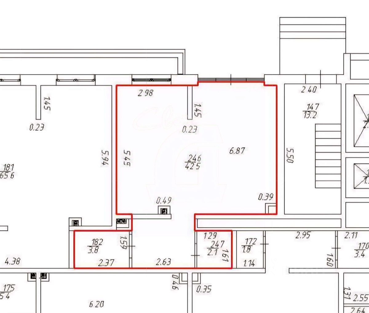 В продаже ещё есть помещение большей квадратуры без ремонта, при желании есть возможность их соединить.