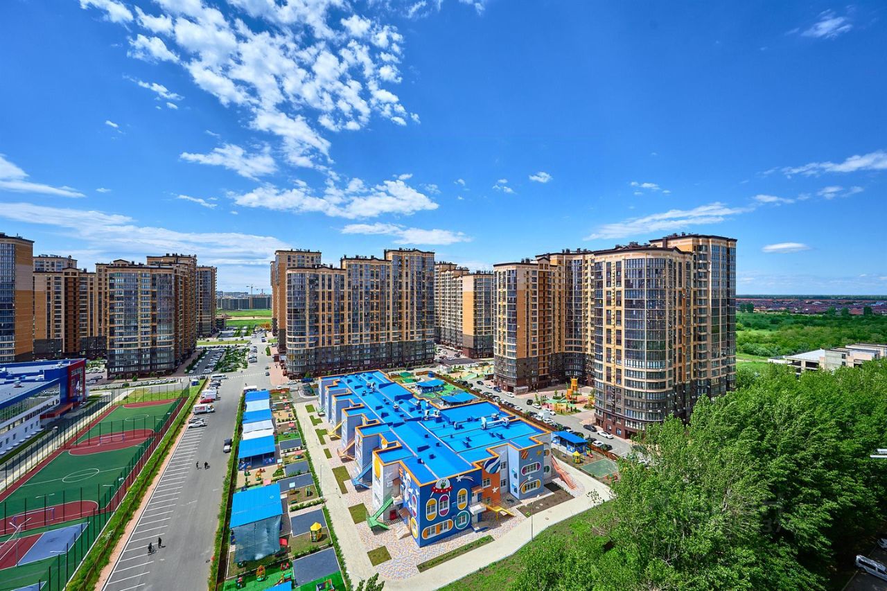 Во дворах спортивные и игровые зоны. В центре комплекса прогулочная аллея ведущая к храму. А самое главное то, что здесь строится ГОРОД СПОРТА И ПАРК ДОСТИЖЕНИЙ.
