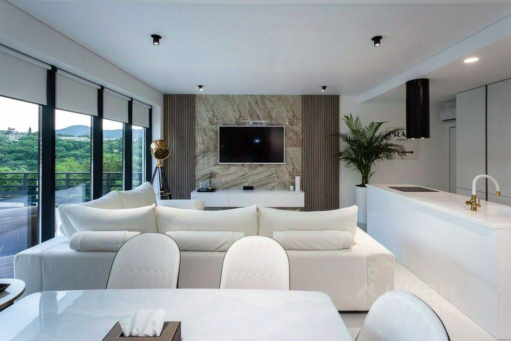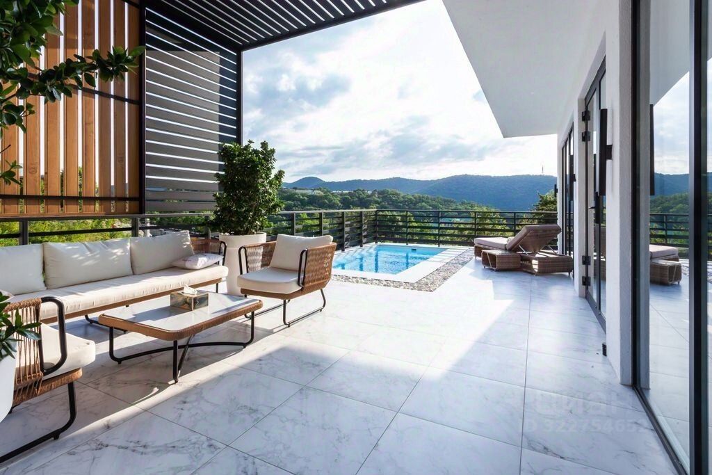 Преимущества дома: Просторная гостиная 44 м² с панорамными окнами. Прямая терраса 47 м² с бассейном и видом на море и горы. Свободное помещение в цоколе — можно использовать как спортивный зал, дополнительную комнату или хозблок. Парковка на 2 авто с индивидуальным заездом и автоматическими воротами. Участок с ландшафтным дизайном.