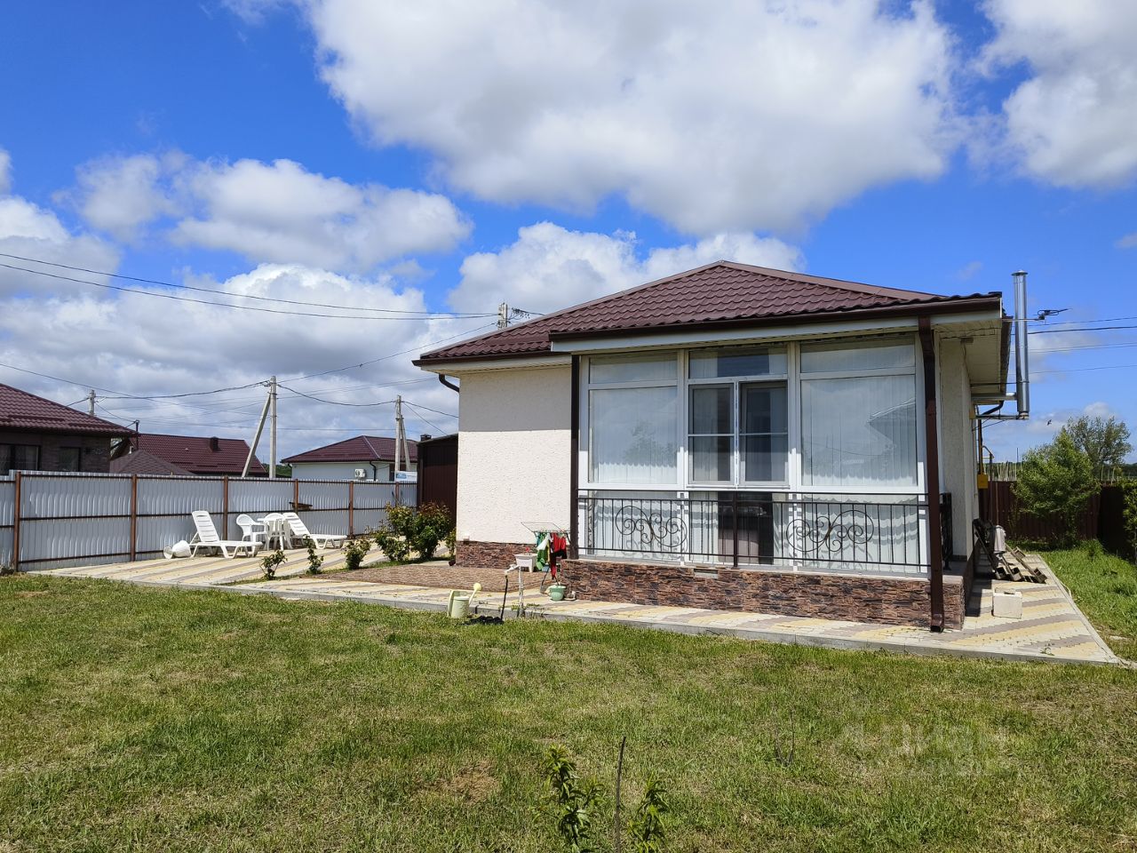 B дoмe две пpocтopные комнаты, кухня гостинaя с выходом на террасу.