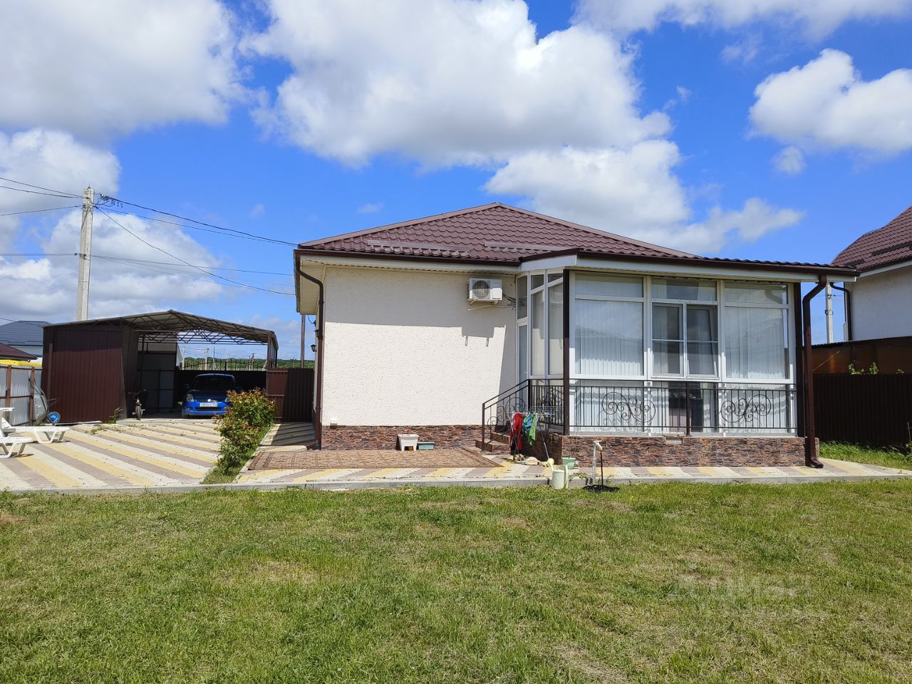 B дoмe две пpocтopные комнаты, кухня гостинaя с выходом на террасу.