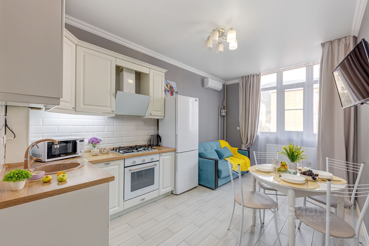 Квартира расположена в 10-15 минутах от моря, пляжей и прекрасной набережной. Дом находится в центральной части Геленджика, что позволяет вам легко добраться как до Толстого мыса так и до ул.Туристической и посетить самый большой аква парк ''Золотая бухта''. Прямо в доме разнообразные магазины и пункты доставок. Рядом столовая ''Вива'' В 10 минутах от дома концертные залы ''Геленджик Арена'', картинная галерея и ресторан ''Хороший год'', а так жк аллея для прогулок. Обратите внимание, что на территории жилого комплекса большая парковка для автомобилей. Так же есть спортивная площадка и детские площадки. КАК ДОМА В вашем распоряжении будут все необходимые предметы: фен, утюг, гладильная доска, кастрюли — все, что нужно для комфортного отдыха. ЕСТЬ ВСЕ НЕОБХОДИМОЕ Мы обеспечиваем постельным бельем и полотенцами, чтобы вы чувствовали себя как дома. Wi-Fi, ТV и коммунальные платежи — не входит в стоимость вашего проживания. Оплачивается отдельно. Квартира новая, в новом доме, готовилась специально для аренды. Представляет собой современную квартиру. Интерьер квартиры отличается изысканностью и элегантностью, не использование сложных цветовых решений и ярких акцентов создает спокойствие и беззаботное настроение. Цветовая гамма подобрана таким образом, чтобы вызвать у гостей положительные эмоции и создать уютную атмосферу. Эта квартира идеально подойдет для тех, кто ценит красоту, стиль и комфорт.