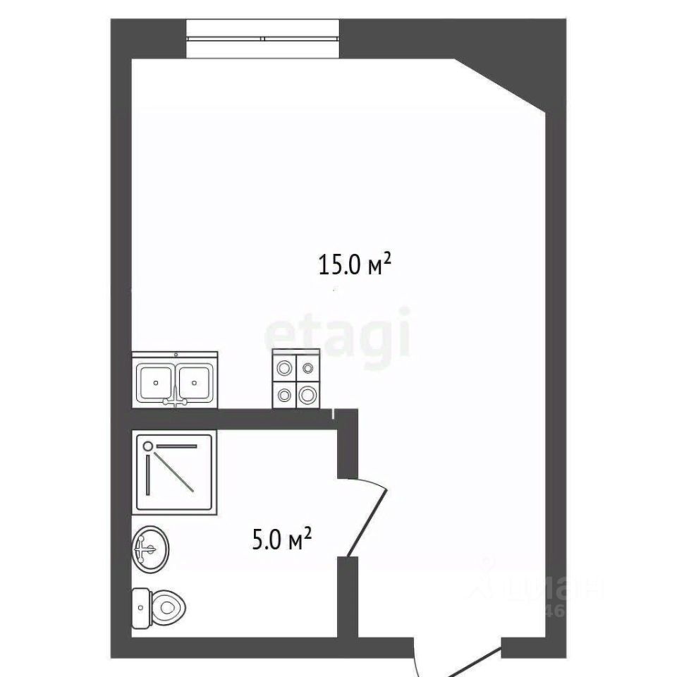Студия 20м полностью укомплектована всем необходимым для проживания.
