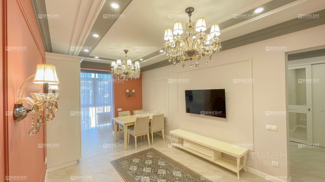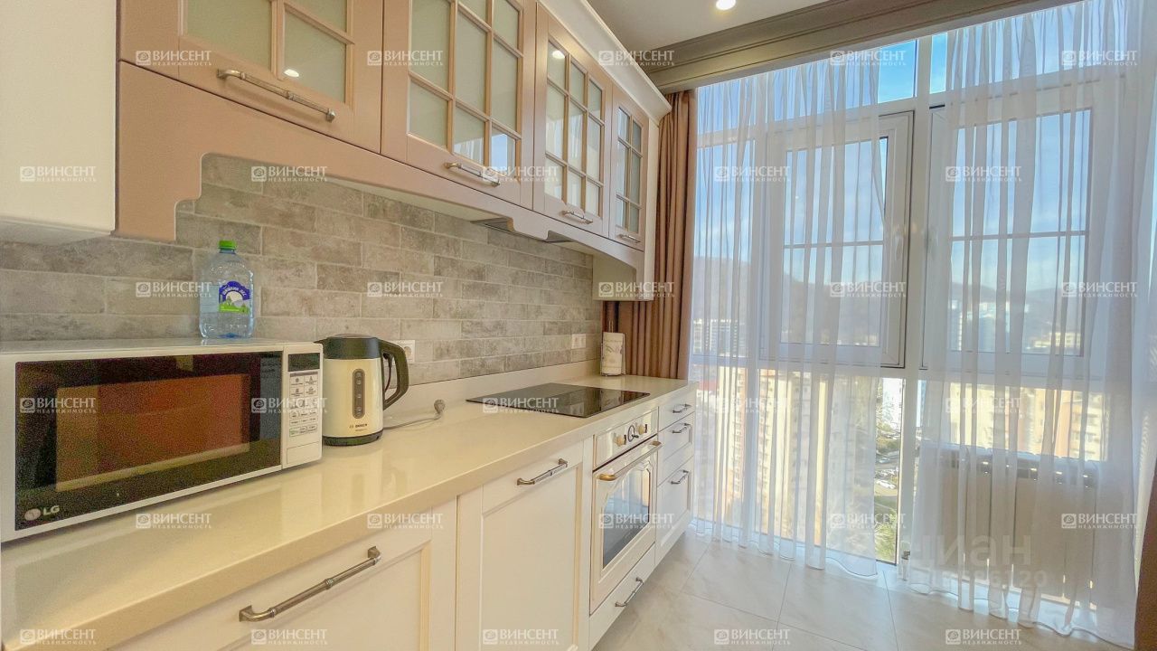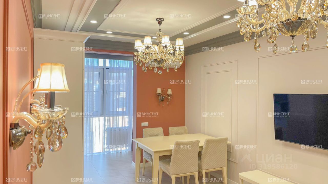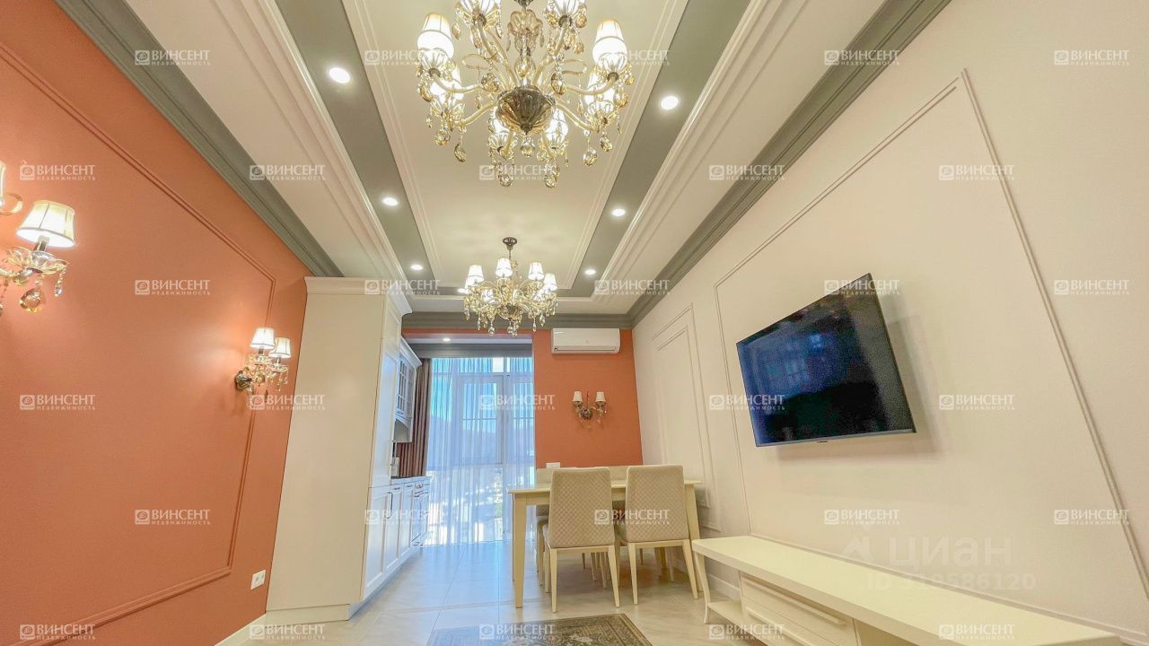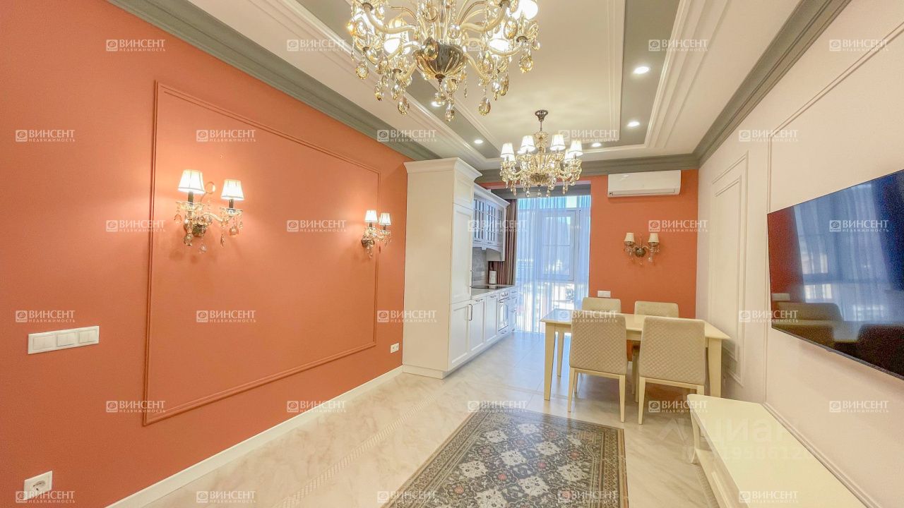Квартира с новым дизайнерским ремонтом: установлена современная мебель, техника от немецких производителей, продумана каждая деталь. Планировка включает две спальни, кухню-гостиную, две ванные комнаты, отдельную гардеробную и множество мест хранения. Панорамные окна открывают прямой вид на море и горы — светлая, просторная атмосфера в каждой комнате.
