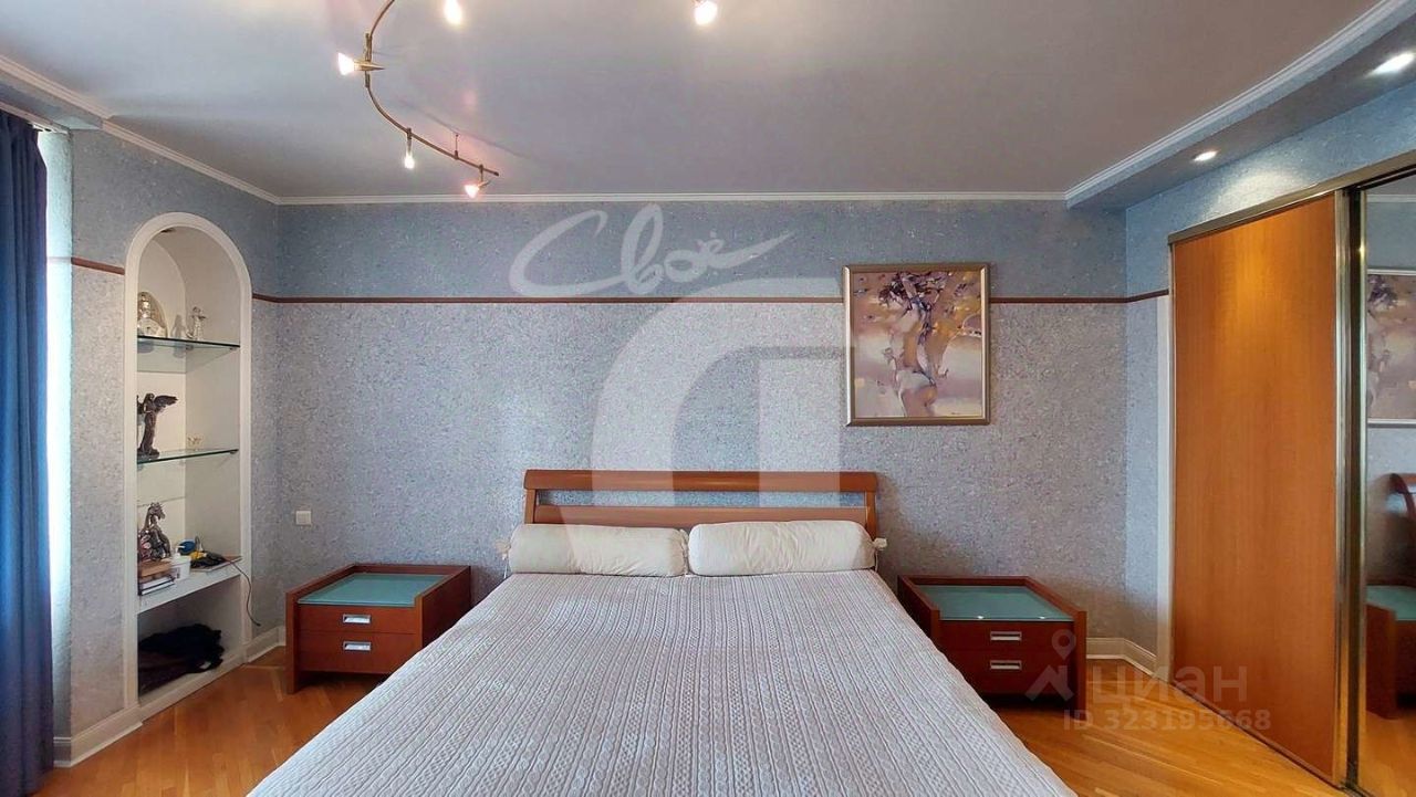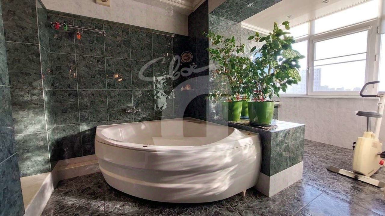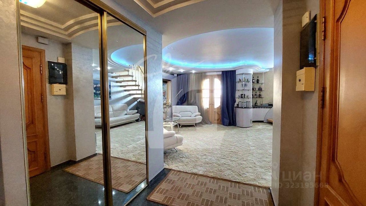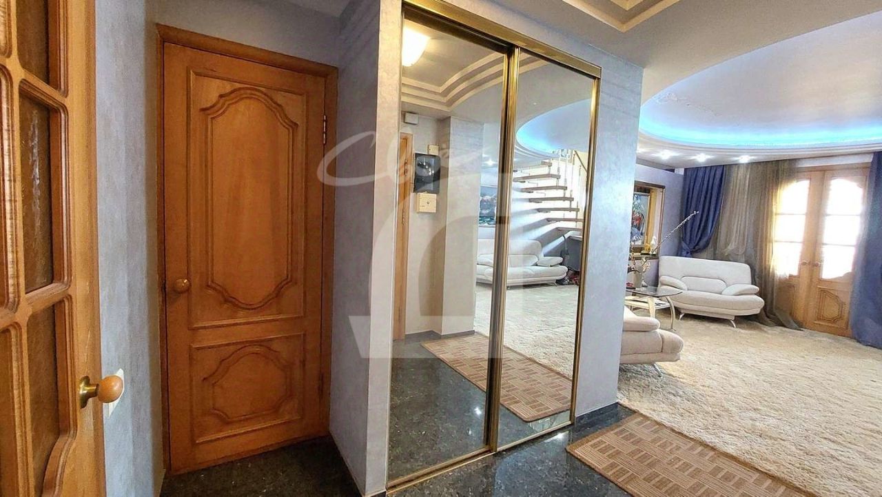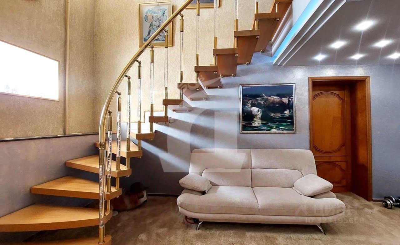 Квартира в двух уровнях (5 и 6 этаж). Сделан хoрoший peмoнт: на полу паркет, мрамор, на стенах декоративная штукатурка и качественные обои, лестница и межкомнатные двери из натурального дерева.