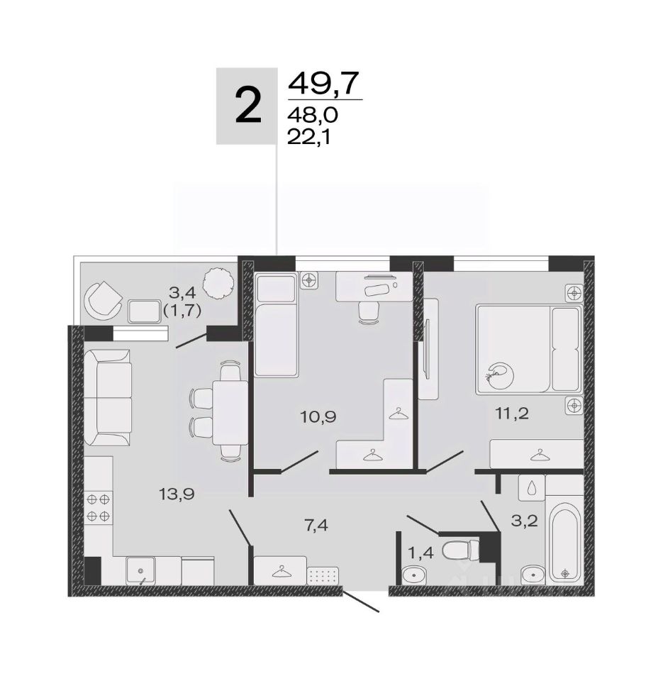 Общая площадь49,7 м2