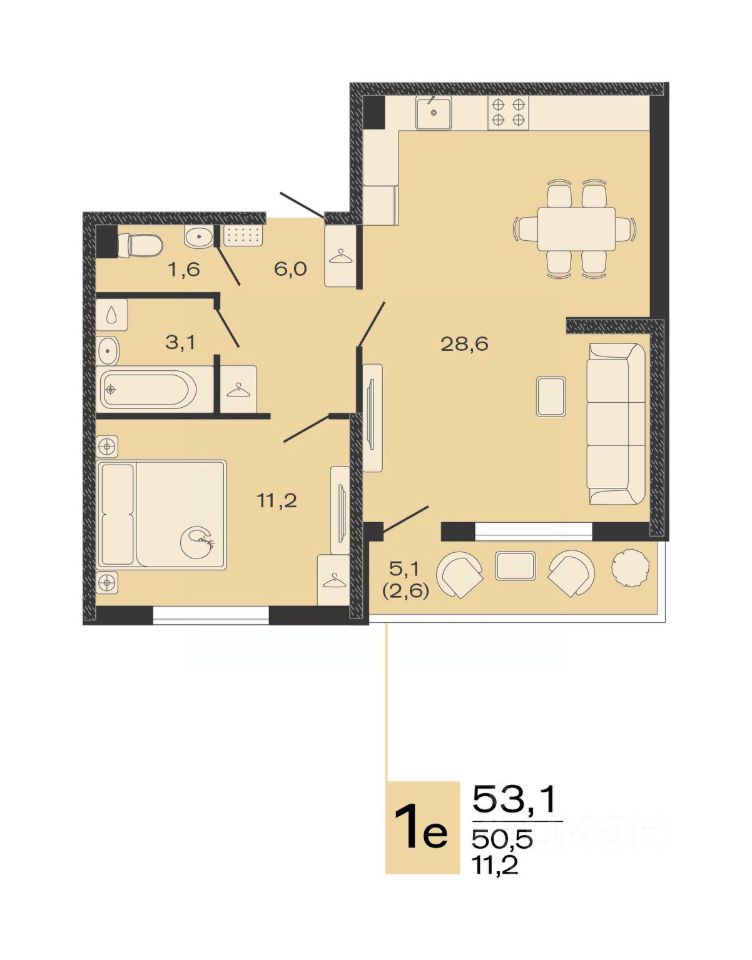 Общая площадь53,1 м2