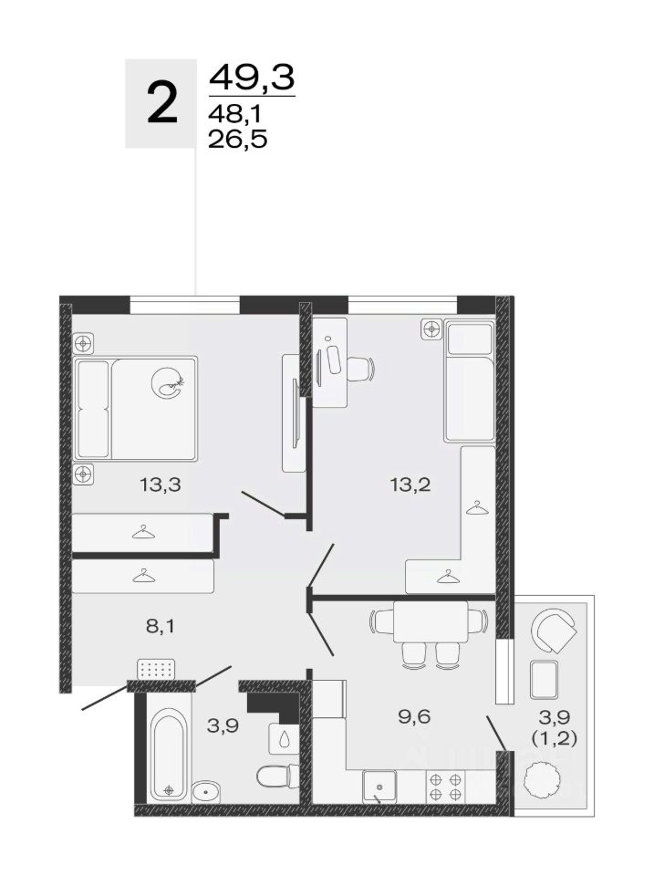 • Квартира в рассрочку без переплат! Рассрочка предоставляется на год с ПВ всего от 30%.