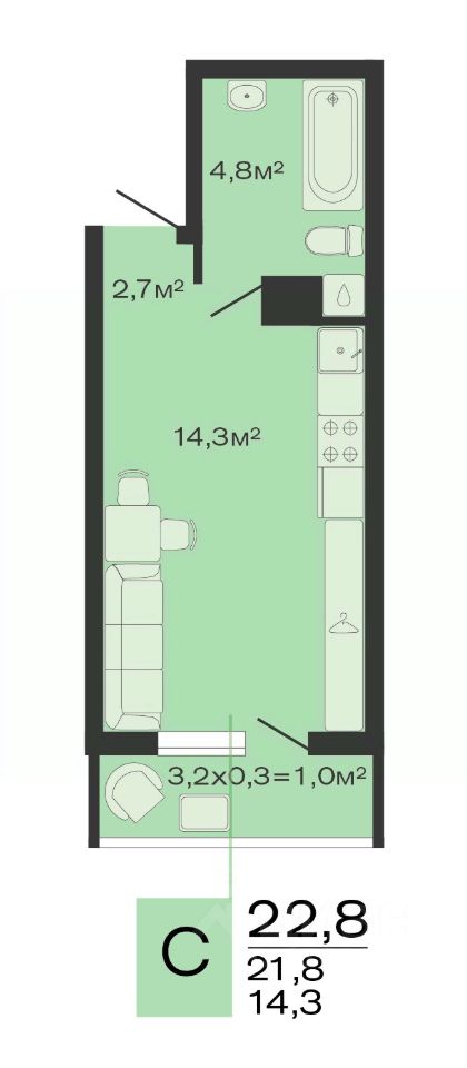 Общая площадь22,8 м2