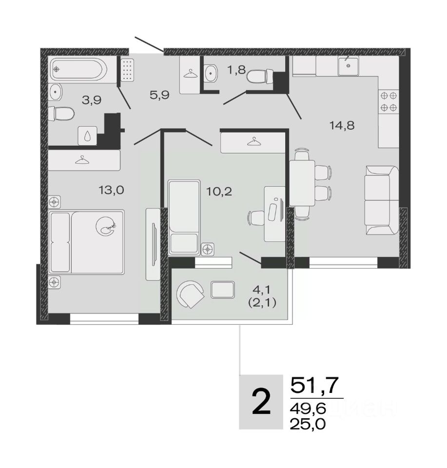 Общая площадь51,7 м2