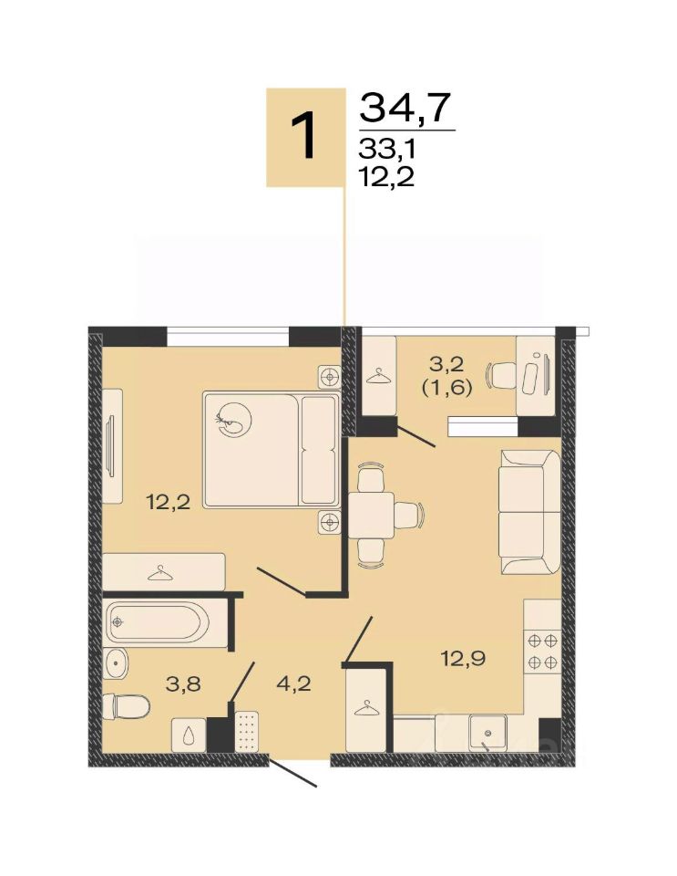 Общая площадь34,7 м2