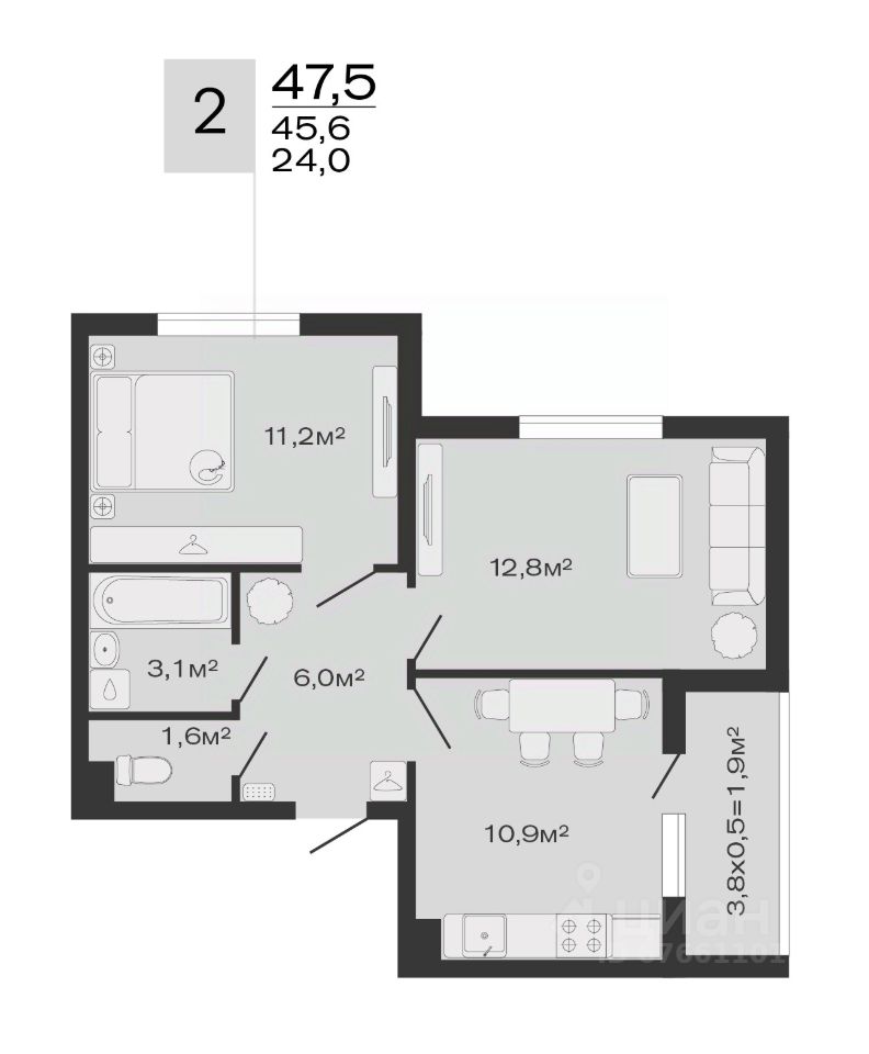 Общая площадь47,5 м2