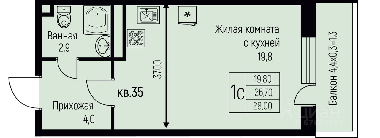 Продаётся студия в строящемся доме (Литер 9), срок сдачи: IV-кв. 2026, общей площадью 28 кв.м., на 3 этаже. Новый жилой комплекс ''Nova Vita'' от застройщика МЕТРИКС DEVELOPMENT расположен по адресу Краснодар, посёлок Берёзовый, улица имени А.Н. Лодыгина.