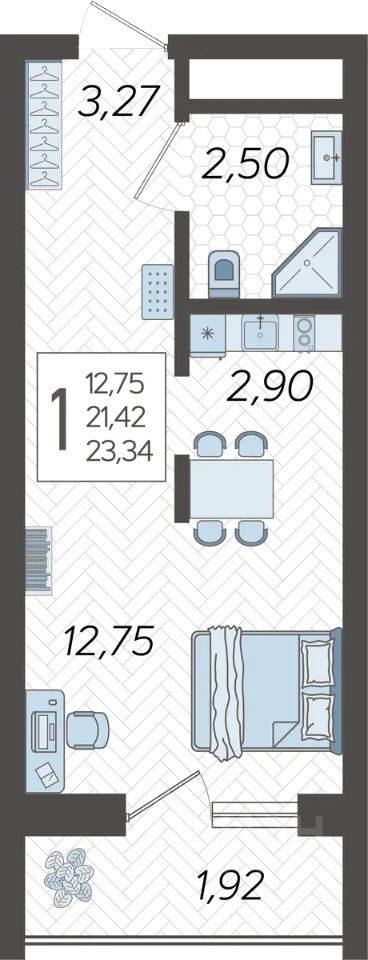 Застройщиком спроектированы одно-, двух- и трехкомнатные квартиры.