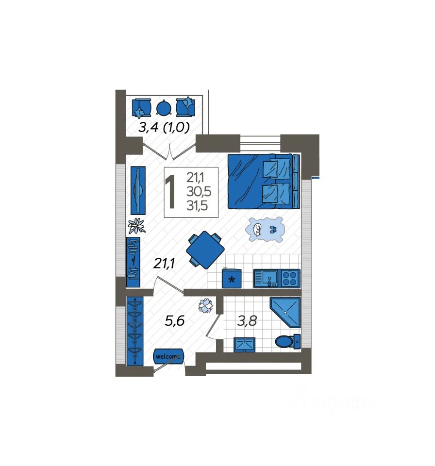 Продаётся студия в сданном доме (Литер 5), срок сдачи: III-кв. 2024, общей площадью 31.66 кв.м., на 10 этаже. Жилой комплекс ''Летний'' расположен в ущелье реки Кудепста.