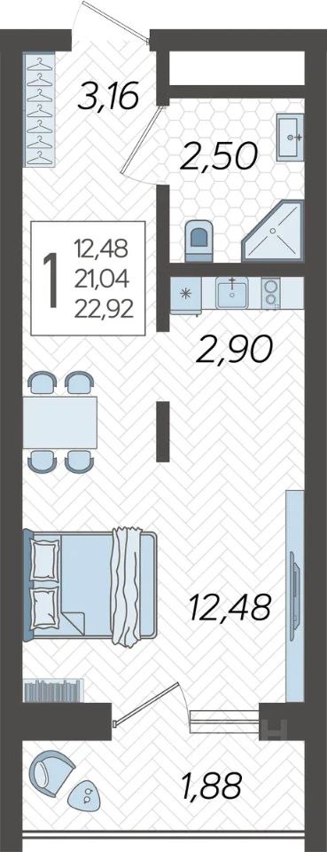 Застройщиком спроектированы одно-, двух- и трехкомнатные квартиры.