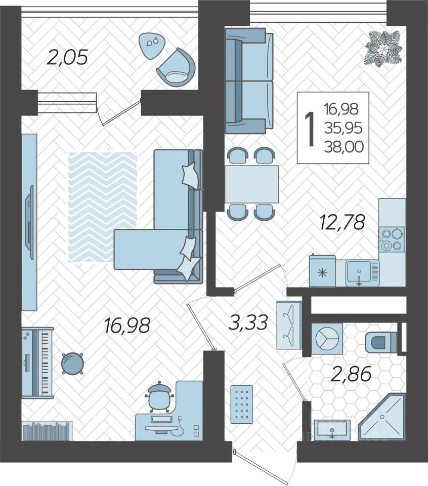 Застройщиком спроектированы одно-, двух- и трехкомнатные квартиры.