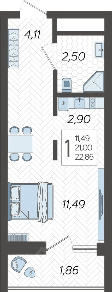 Застройщиком спроектированы одно-, двух- и трехкомнатные квартиры.