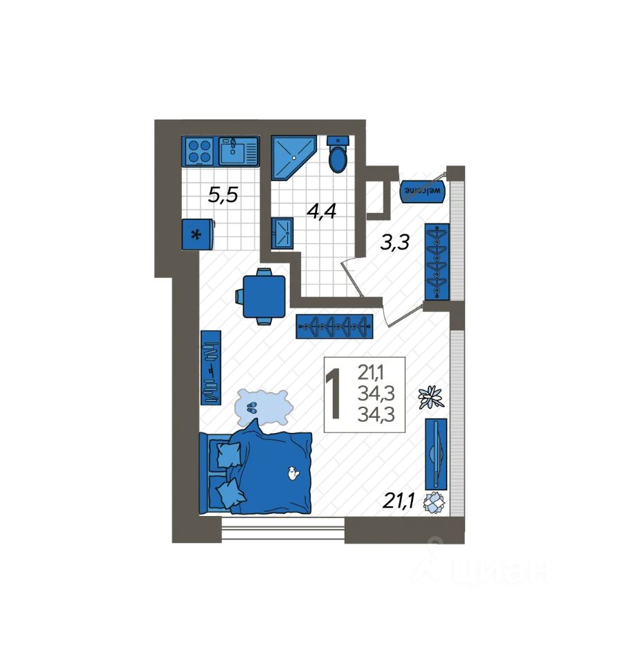 Продаётся студия в сданном доме (Литер 5), срок сдачи: III-кв. 2024, общей площадью 37.4 кв.м., на 1 этаже. Жилой комплекс ''Летний'' расположен в ущелье реки Кудепста.