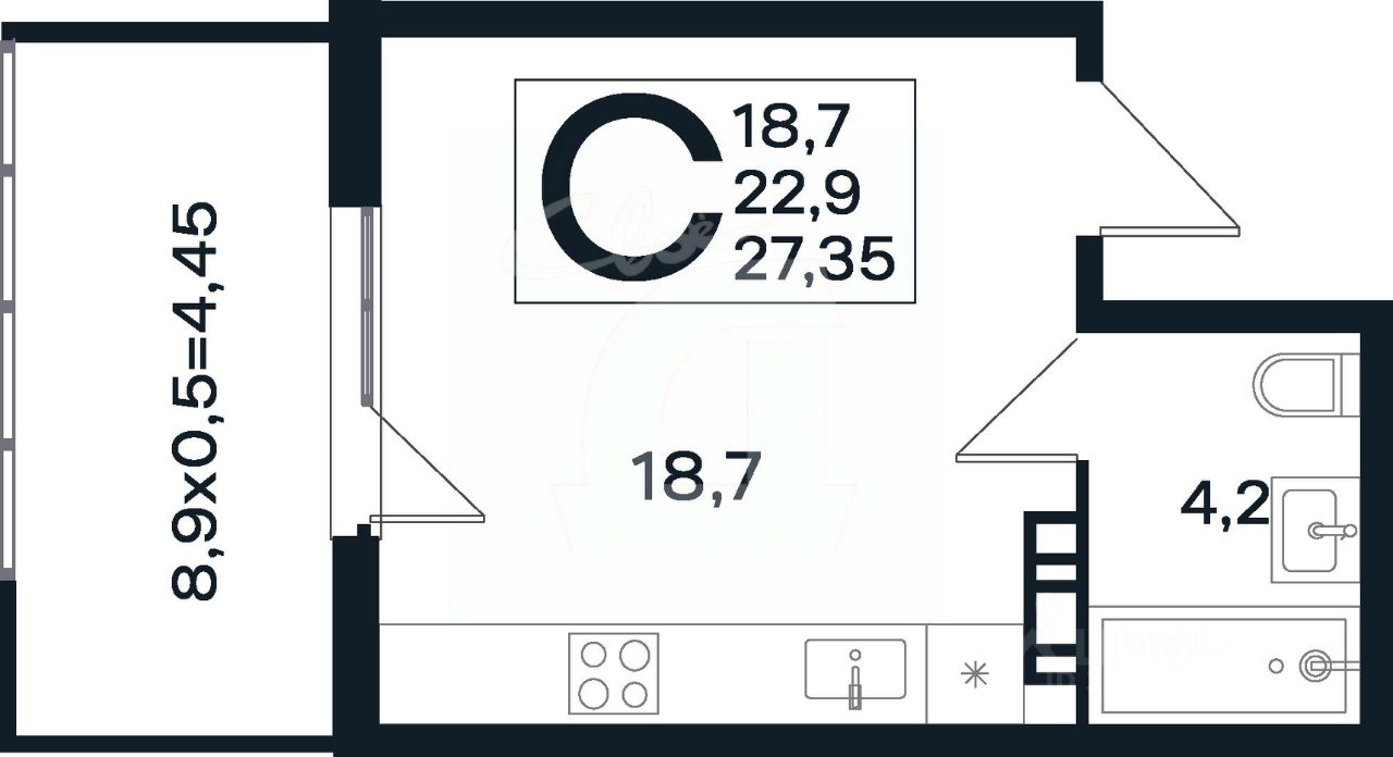 В продаже квартира студия в клубном квартале ''Новая Елизаветка''.