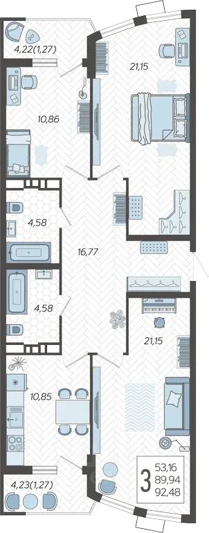 Продаётся 3-комнатная квартира в строящемся доме (Дом 100/8), срок сдачи: II-кв. 2026, общей площадью 92.48 кв.м., на 4 этаже. Новый жилой комплекс ''Альфа'' от застройщика ''Телекомстрой'' расположен по адресу город Краснодар, Уральская улица.