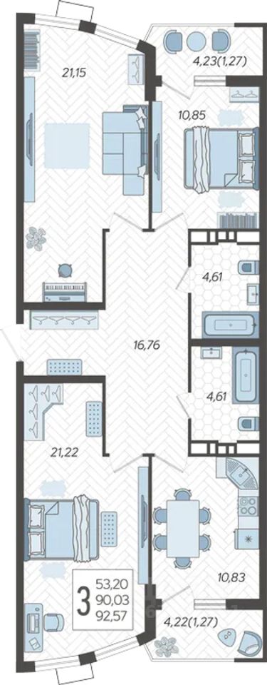 Продаётся 3-комнатная квартира в строящемся доме (Дом 100/8), срок сдачи: II-кв. 2026, общей площадью 92.57 кв.м., на 20 этаже. Новый жилой комплекс ''Альфа'' от застройщика ''Телекомстрой'' расположен по адресу город Краснодар, Уральская улица.