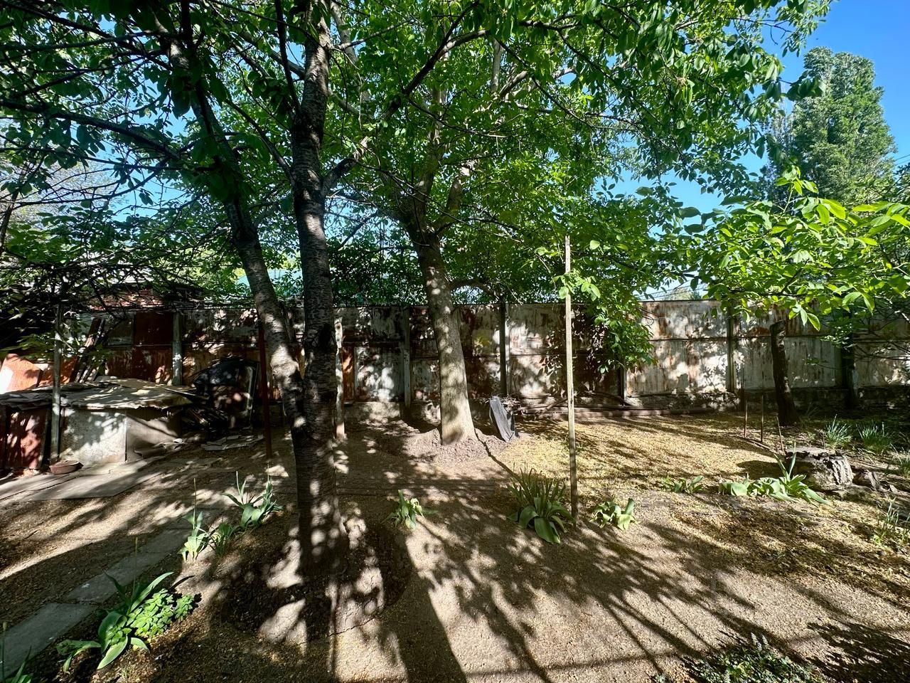 На участке есть строения. Большая зона отчуждения. Широкая асфальтированная улица. Не проездное место, чистейший воздух, нет пыли. Много плодовых деревьев. До школы пешком 10 минут, до центра 15 минут.