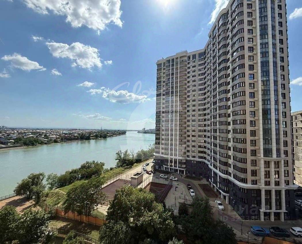- на 9 этаже 24-этажного здания, окна с видом на реку Кубань