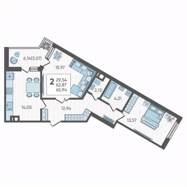 Общая площадь65,94 м2