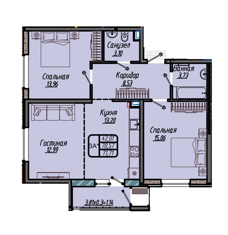 Общая площадь71,71 м2