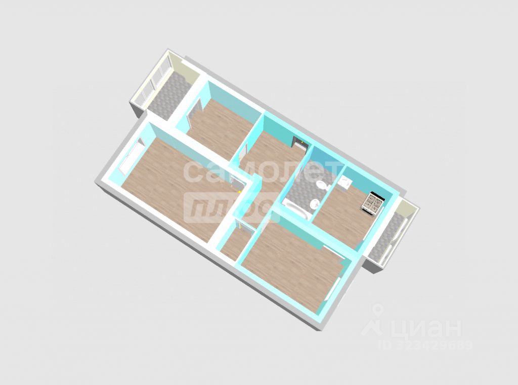 Уютная трехкомнатная квартира общей площадью 64.
