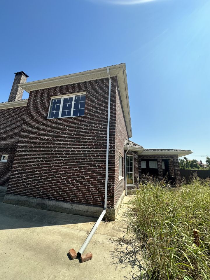 Продам двух этажный дом с пред чистовой отделкой внутренних помещений. Площадь дома 260 кВ. Метров. Площадь летней террасы 20 кВ. М. Котельная полностью готова для эксплуатации. Газ подключен. В зимнее время дом отапливался. Крыша укрыта металлопрофилем Grandline. Верхняя плита утеплена минеральной ватой. Стены внутренних помещений оштукатурены гипсовой штукатуркой. Стены в санузлах оштукатурены цементной штукатуркой. В дому три сан узла, два на втором этаже, один на первом. На втором этаже санузлы полностью готовы под укладку плитки, установлены все сантехнические приборы (подробности при личном общении). В один сан узел полностью приобретена плитка, с учетом финишных размеров. Окна установлены фирмы Rehau с внутренним разделением в стеклопакете. По дому полностью сделана разводка электрическая с учетом дизайн проекта. Так разведено отопление и на первом этаже проложены водяные теплые полы. От котла отдельной веткой выведены трубы под отопление планируемого бассейна. На участке залита плита с коммуникациями для бани и тех помещения для бассейна. На участке закопаны на предельной глубине 3 септика. 2 для канализации домашних отходов, один для бани и бассейна. Газовый котел имеет установленные контроллеры внешней температуры с блоком управления через вай фай, для контроля за отоплением дома. Рядом с домом залита Алина под стоянку автомобилей и планируемый навес над ней. Имеется дизайн проект 2 го этажа и лестничной группы с стиле контепорари. Имеется разводка слабо точки под интернет, спутниковое телевидение и видео наблюдение по периметру всего дома, а также проведены провода под домофон калитки на входе в дом и втором этаже. Установлены трассы для подключения кондиционеров, которые скрыты под потолком и проведено к ним электричество. Электрика установлена с учетом возможности подключения стабилизаторов напряжения и внешней установки источника бесперебойного питания. Ввод в дом электричества осуществлено подземным спросом трехфазовым проводом под 380вт.