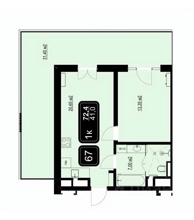 Общая площадь72,4 м2