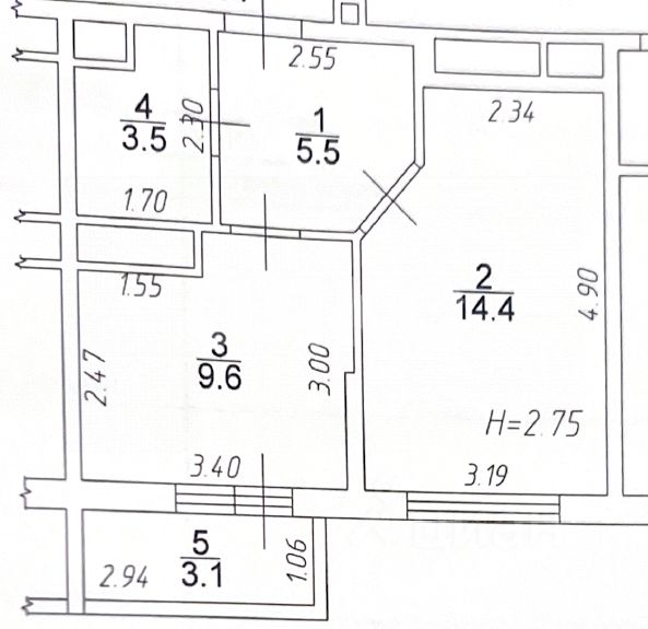 Общая площадь 33 кв. м, расположена на 4м этаже в 5этажном доме.