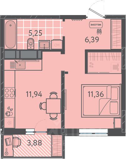 Жилая площадь11,4 м2