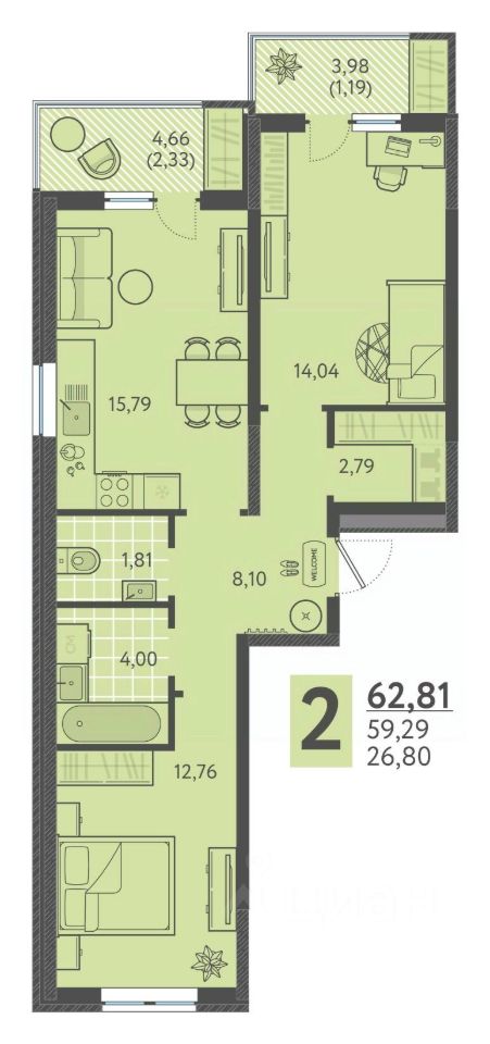 продам 2-к, Имени Виктора Анфиногенова, 12 корп. 18 472 800 ₽