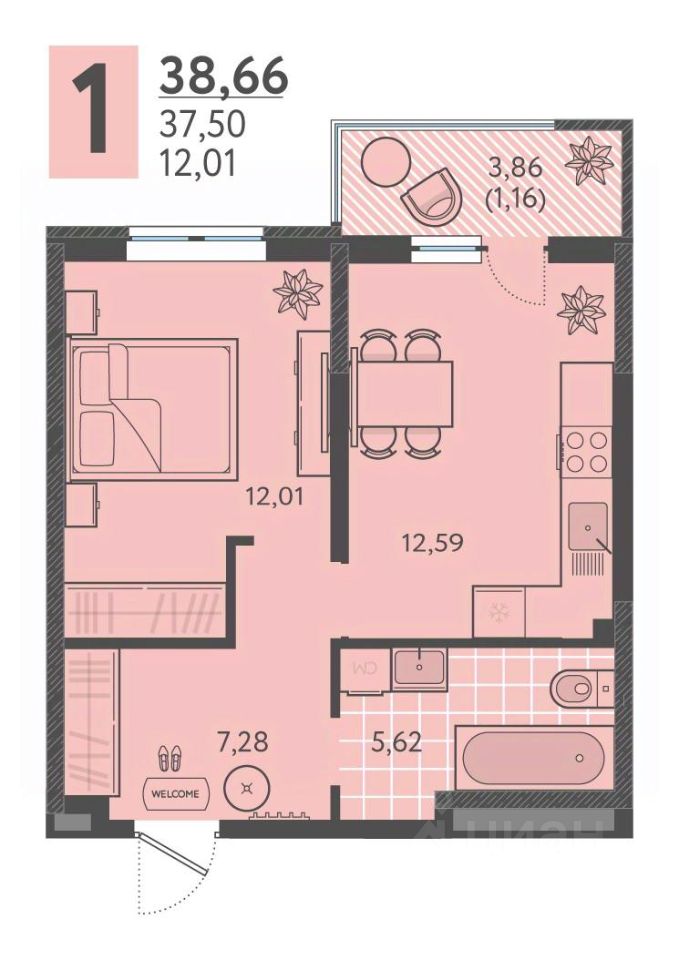 продам 1-к, Имени Виктора Анфиногенова, 12 корп. 25 613 640 ₽