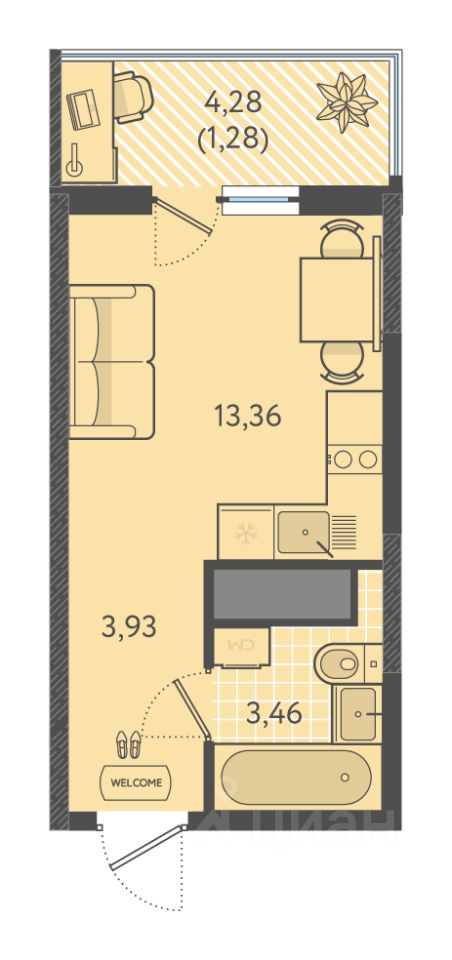 Общая площадь21,57 м2