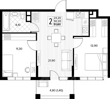 Продаётся 2-комнатная квартира в строящемся доме (поз.6), срок сдачи: IV-кв. 2027, общей площадью 51.6 кв.м., на 3 этаже. Новый жилой комплекс ''Кипарис'' от застройщика ''AVA'' расположен по адресу: Россия, Краснодарский край, муниципальный округ Анапа, село Сукко, Мирная улица