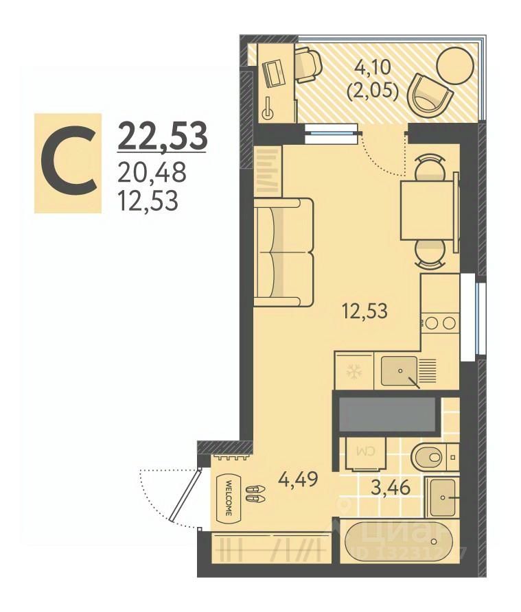 Общая площадь21,95 м2