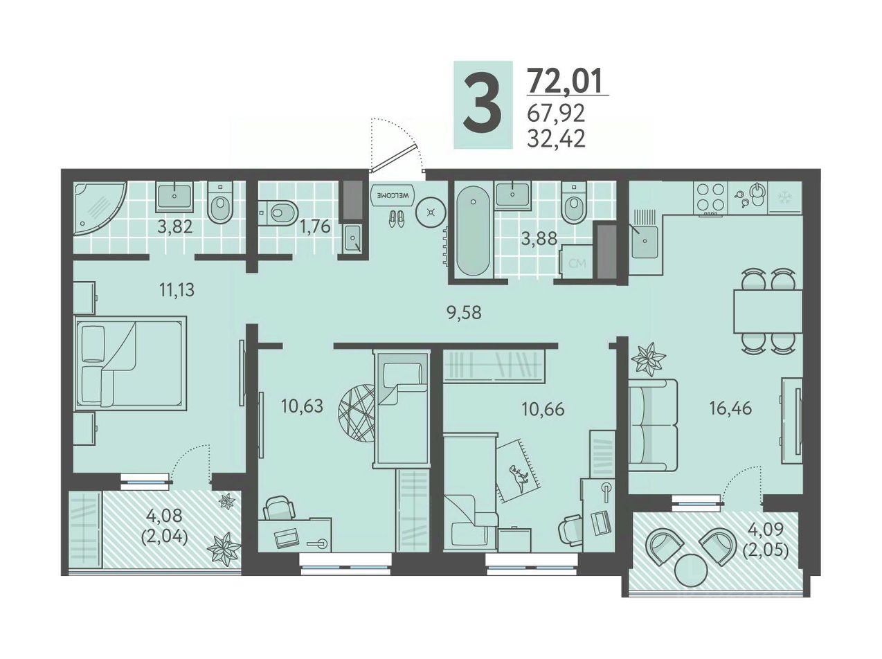 Общая площадь72,35 м2