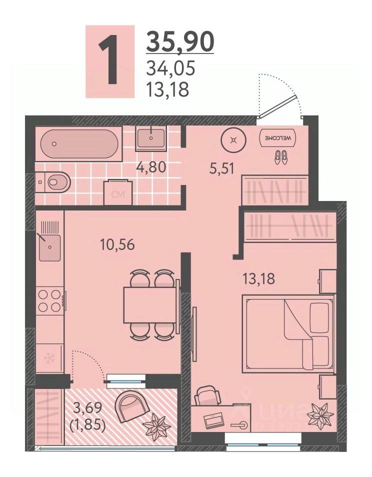 продам 1-к, Имени Виктора Анфиногенова, 12 корп. 25 556 800 ₽