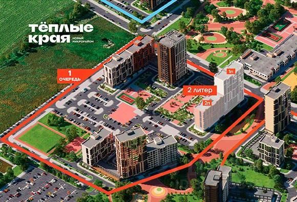 Микрорайон ''Тёплые края'' — это масштабный проект комплексного освоения территории. Жилой комплекс воплотил в себе все самые высокие критерии отбора квартиры по планировочным решениям, благоустройству и инфраструктуре. Преимущества, которые действительно важны: Комфорт и качество: • Монолитно-кирпичные дома с шумо- и теплоизоляцией. • Высокие потолки до 4,2 м, панорамные окна, функциональные планировки. • Предчистовая или чистовая отделка — можно сразу заехать или реализовать свой дизайн. Безопасные дворы без машин, видеонаблюдение, закрытая территория. Благоустройство: • Более 65 000 м² зелёных зон, скверы, аллеи, прогулочные бульвары. • 40 000 м² детских и спортивных площадок — от workout-зон до игровых городков.