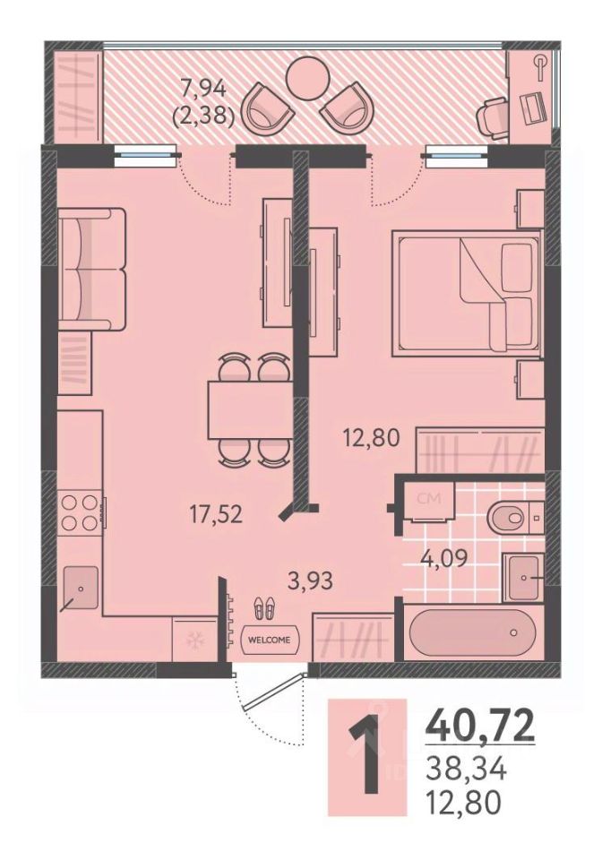 продам 1-к, Имени Виктора Анфиногенова, 12 корп. 17 398 690 ₽